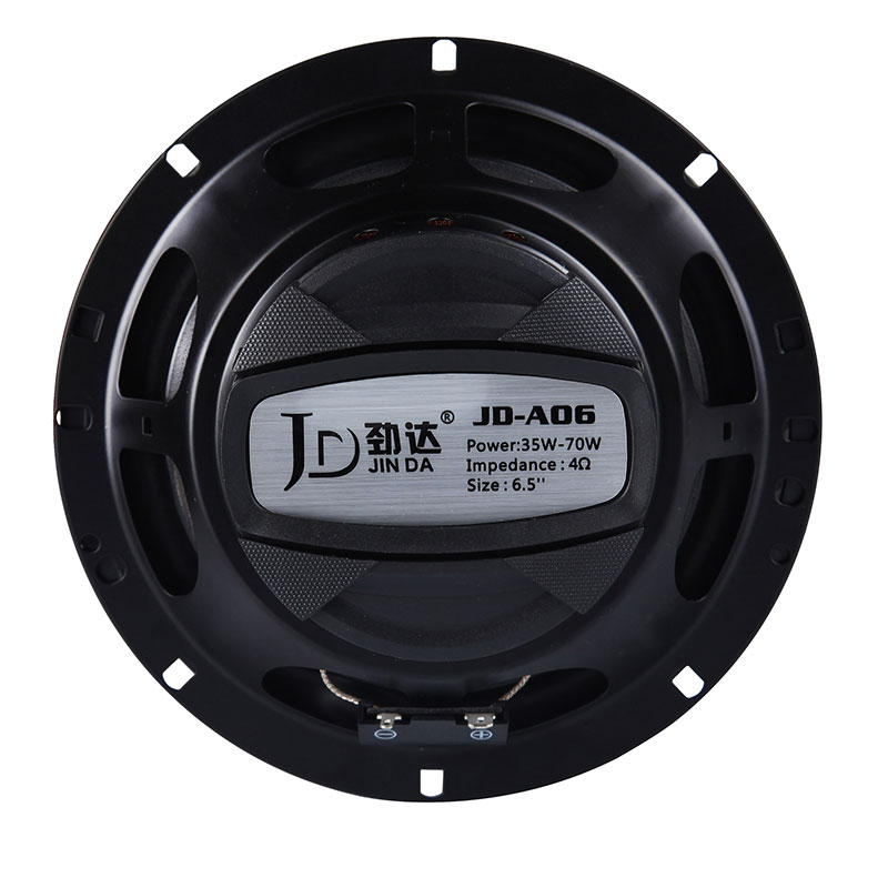 Model:JD-A06 (6.5) 2way Speaker System Power:30W-60W Tweeter :13mmMylar Dome Voice Coil:25.5mm Nominal Impedance Ohms :4 Magnet:10 oz Frequency Range:55Hz-20KHz Sensitivity:89db Material(cone):Fiberglass from France